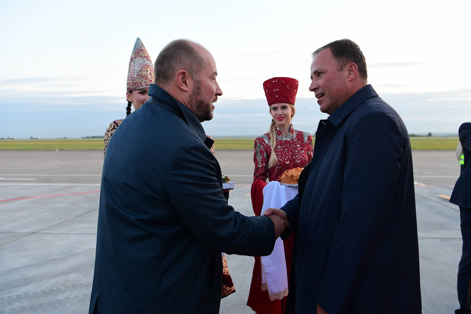 Прибытие полномочного представителя Президента Российской Федерации в Приволжском федеральном округе Игоря Анатольевича Комарова. Встречает Руководитель Аппарата Президента Республики Татарстан А.А. Сафаров