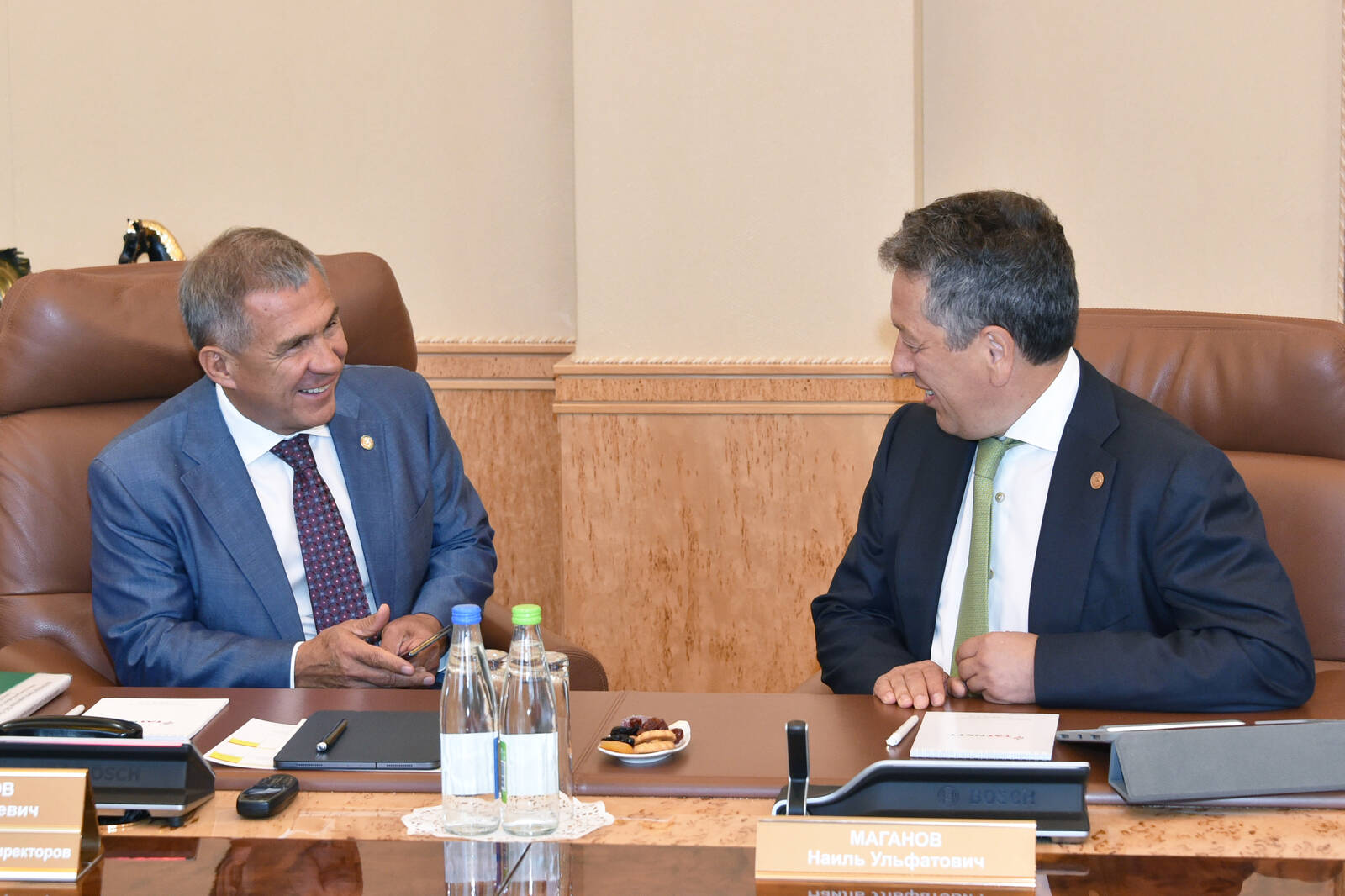 Заседание Совета директоров ПАО "Татнефть". Проводит Председатель Совета директоров, Президент Республики Татарстан Р.Н. Минниханов.