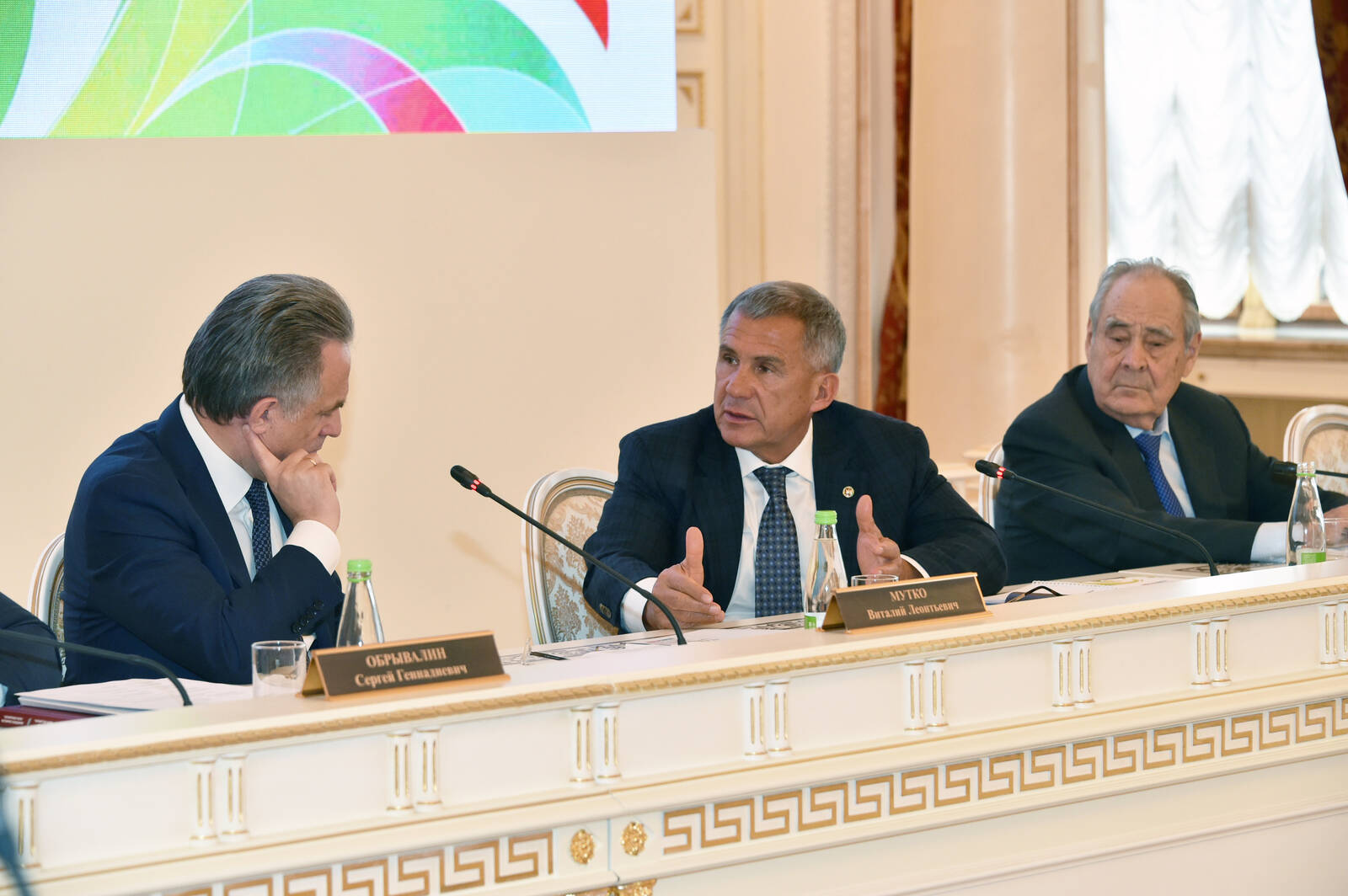 Заседание организационного комитета по подготовке и проведению празднования 100-летия образования Республики Татарстан. Проводит председатель оргкомитета, Заместитель Председателя Правительства Российской Федерации В.Л. Мутко. Принимает участие Президент Республики Татарстан Р.Н. Минниханов.