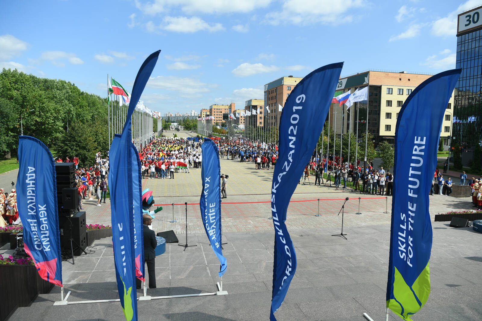 Церемония поднятия флагов стран и регионов - участников 45-го мирового чемпионата "Ворлдскиллс"-2019