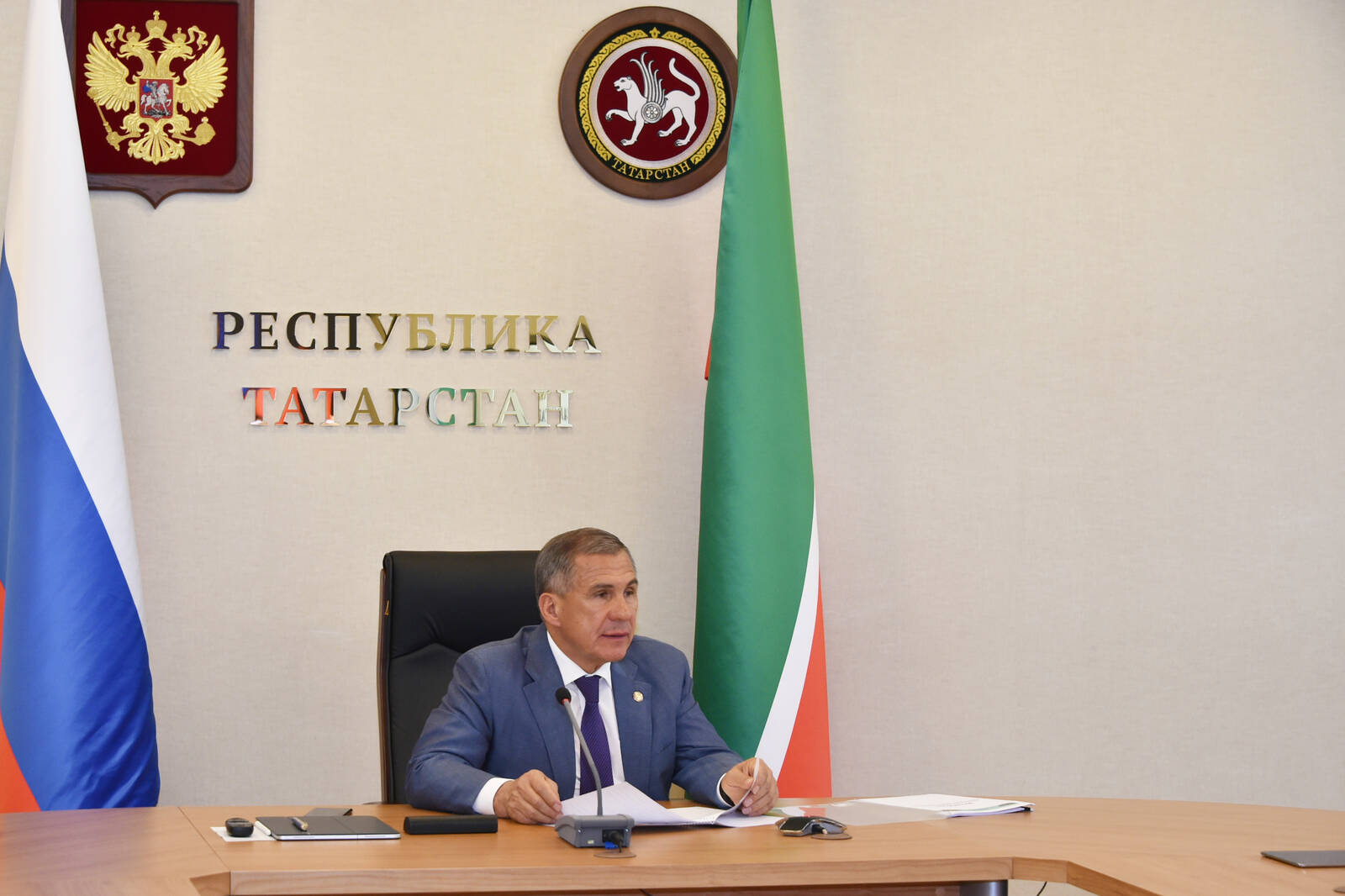 Заседание президиума Совета при Президенте Российской Федерации по стратегическому развитию и национальным проектам в режиме видеоконференцсвязи. Проводит Председатель Правительства Российской Федерации Дмитрий Анатольевич Медведев, принимает участие Президент Республики Татарстан Р.Н. Минниханов.