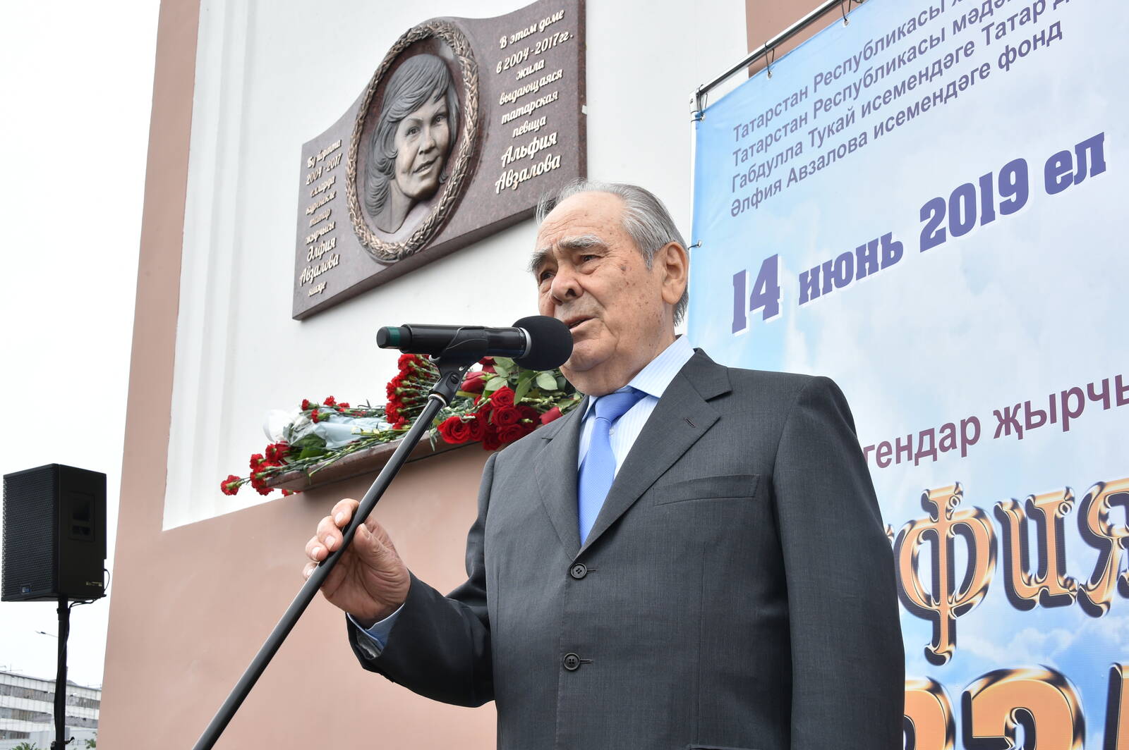 Церемония открытия мемориальной доски заслуженной артистке РСФСР, народной артистке ТАССР, лауреату Государственной премии Республики Татарстан имени Г. Тукая Авзаловой Альфие Авзаловне. Принимает участие Государственный Советник Республики Татарстан М.Ш. Шаймиев.