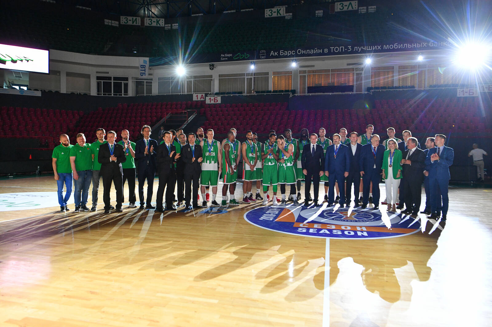 Чествование баскетбольного клуба «УНИКС» бронзового призера Единой лиги ВТБ и чемпионата России по баскетболу сезона 2018/2019. Принимает участие Премьер-министр Республики Татарстан А.В.Песошин.