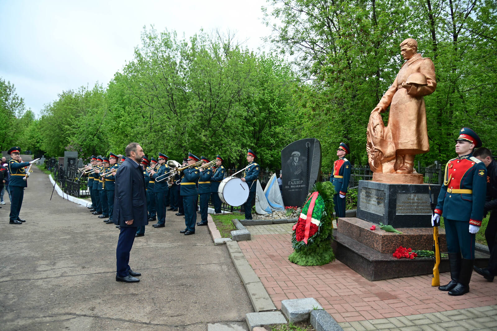 Торжественная церемония возложения цветов к воинским захоронениям и обелиску в память павших в годы Великой Отечественной войны 1941-1945 годов. Принимает участие Премьер-министр Республики Татарстан А.В.Песошин.