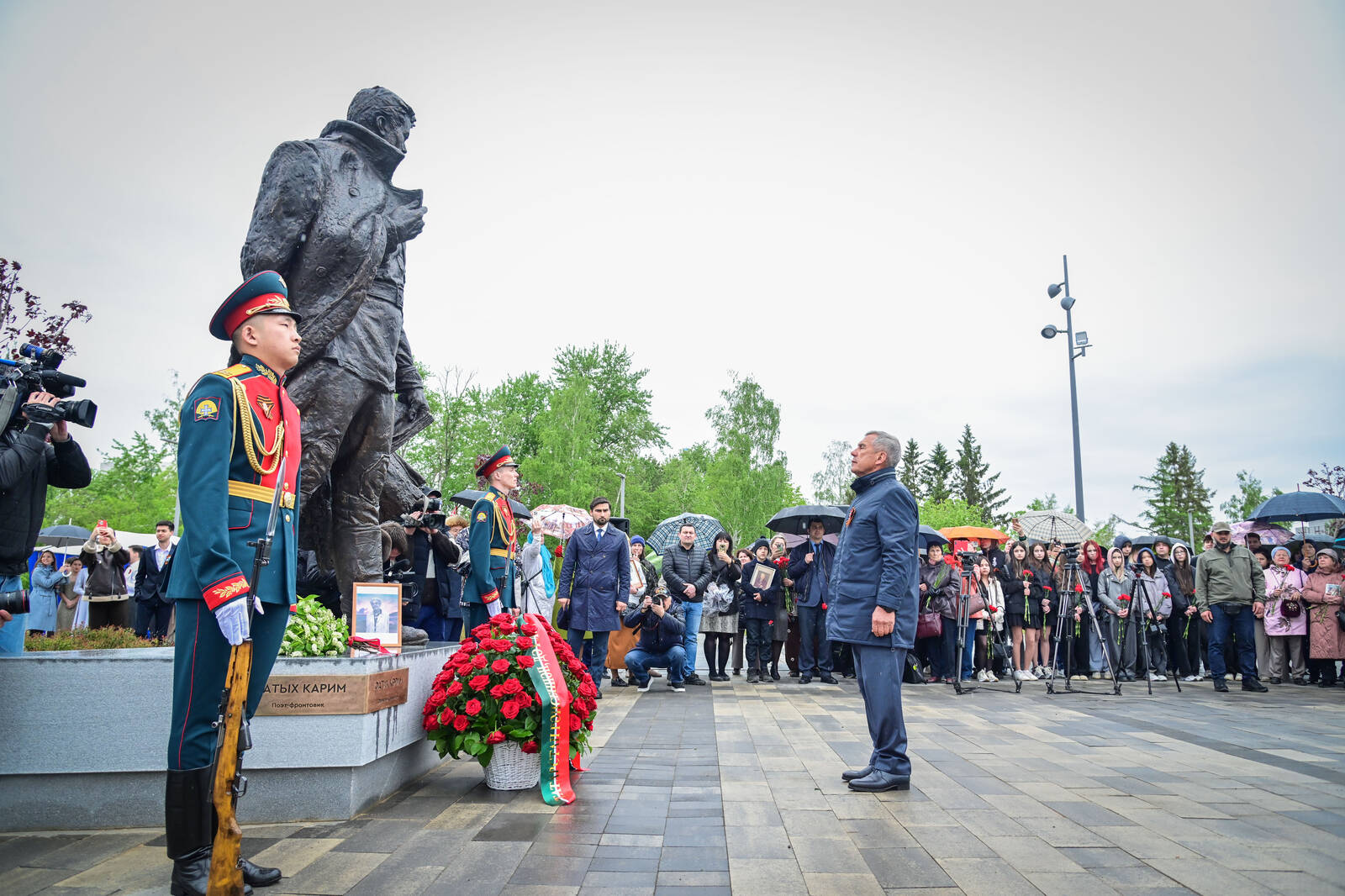 Торжественная церемония открытия памятника поэту-фронтовику Фатиху Кариму. Принимает участие Раис Республики Татарстан Р.Н.Минниханов.