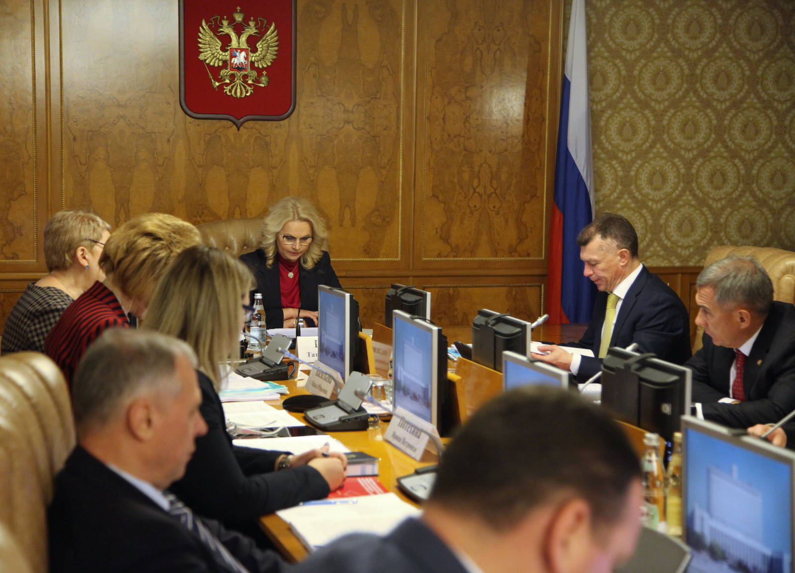 Заседание организационного комитета по подготовке и проведению мирового чемпионата по профессиональному мастерству по стандартам "Ворлдскиллс" в г. Казани в 2019 году. Проводит Заместитель Председателя Правительства Российской Федерации Татьяна Алексеевна Голикова. Принимает участие Президент Республики Татарстан Р.Н. Минниханов.