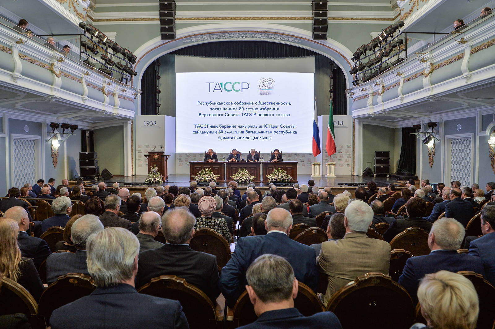 Республиканское собрание общественности, посвященное 80-летию избрания Верховного Совета ТАССР первого созыва. Принимает участие Президент Республики Татарстан Р.Н. Минниханов.