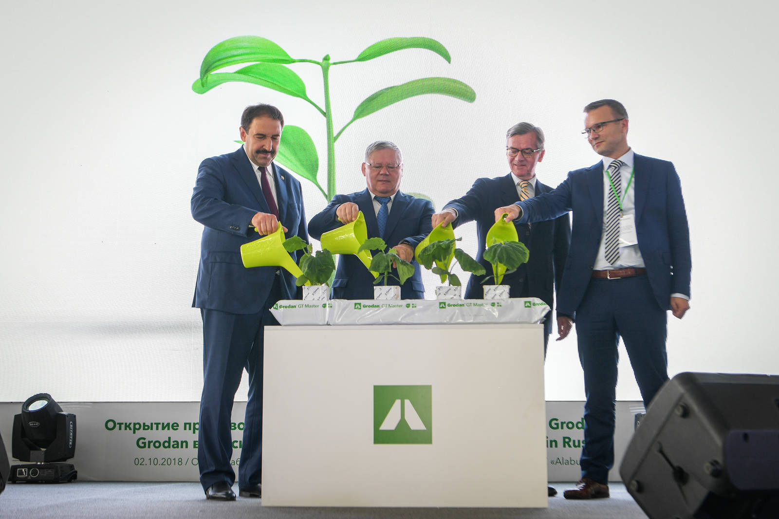 Запуск производственной линии по изготовлению субстрата из каменной ваты для растениеводства "Grodan" завода Rockwool. Принимает участие Премьер-министр Республики Татарстан А.В.Песошин.