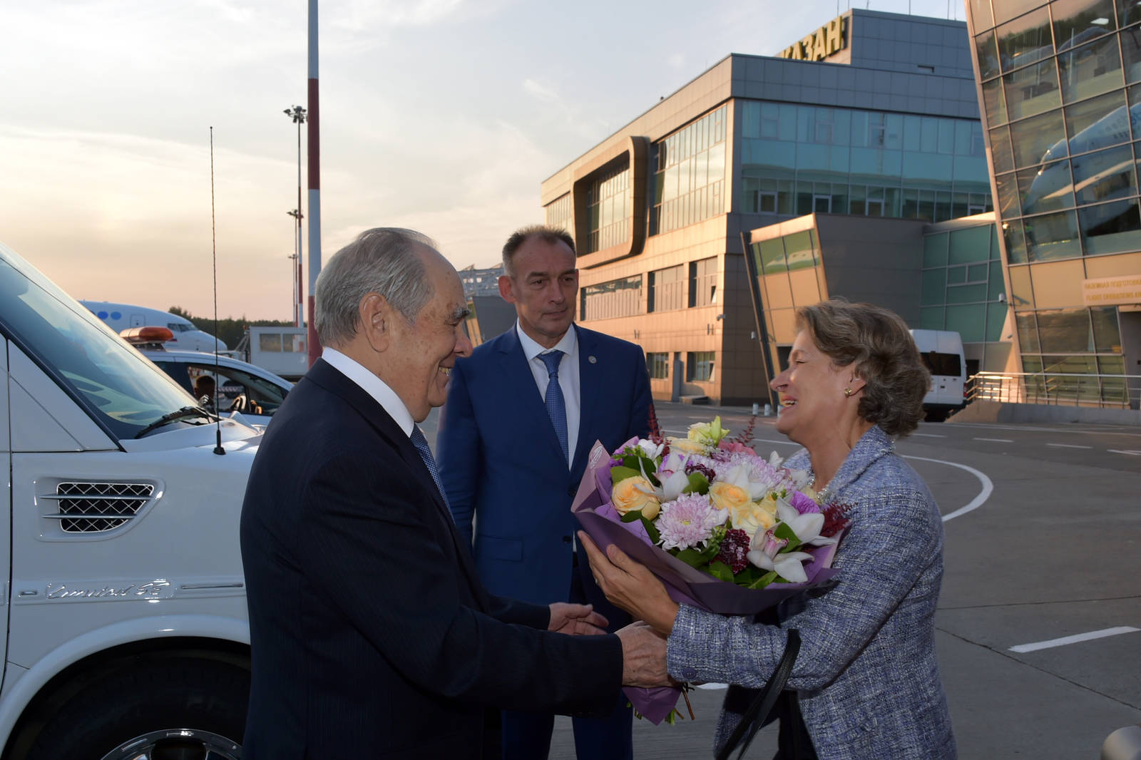 Прибытие Ирины Боковой. Встречает Государственный Советник Республики Татарстан М.Ш. Шаймиев