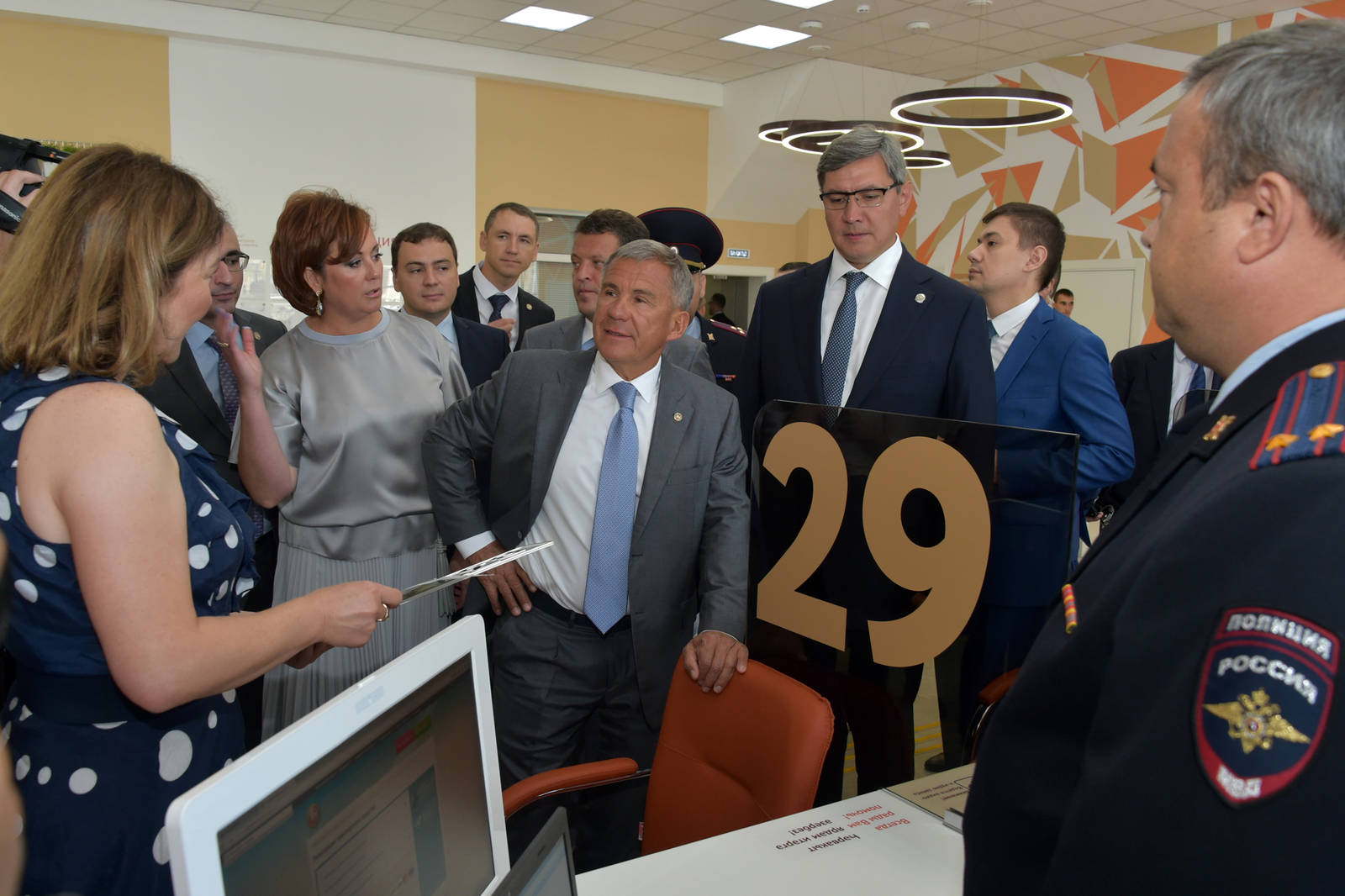 Посещение Президентом Республики Татарстан Р.Н. Миннихановым и заместителем министра экономического развития Российской Федерации Саввой Витальевичем Шиповым Советского отдела ГБУ "Многофункциональный центр предоставления государственных и муниципальных услуг в Республике Татарстан"