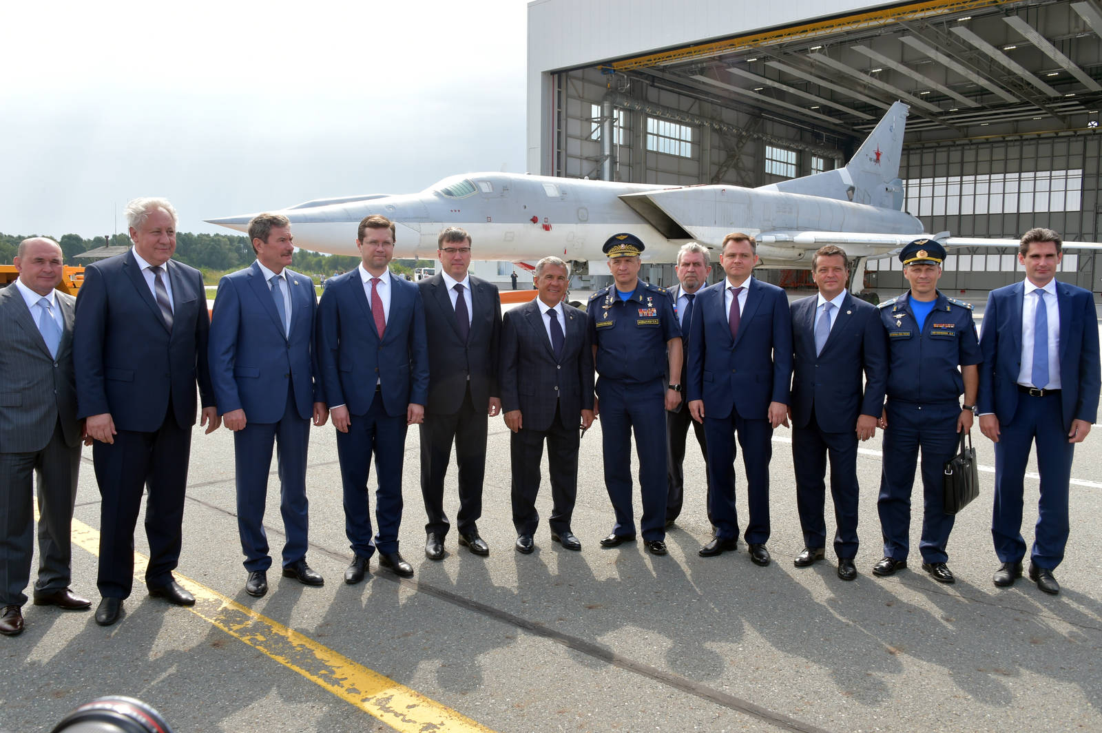 Торжественное мероприятие, посвященное выкатке на летно-испытательную станцию самолета "Ту-22М3М". Принимает участие Президент Республики Татарстан Р.Н. Минниханов.