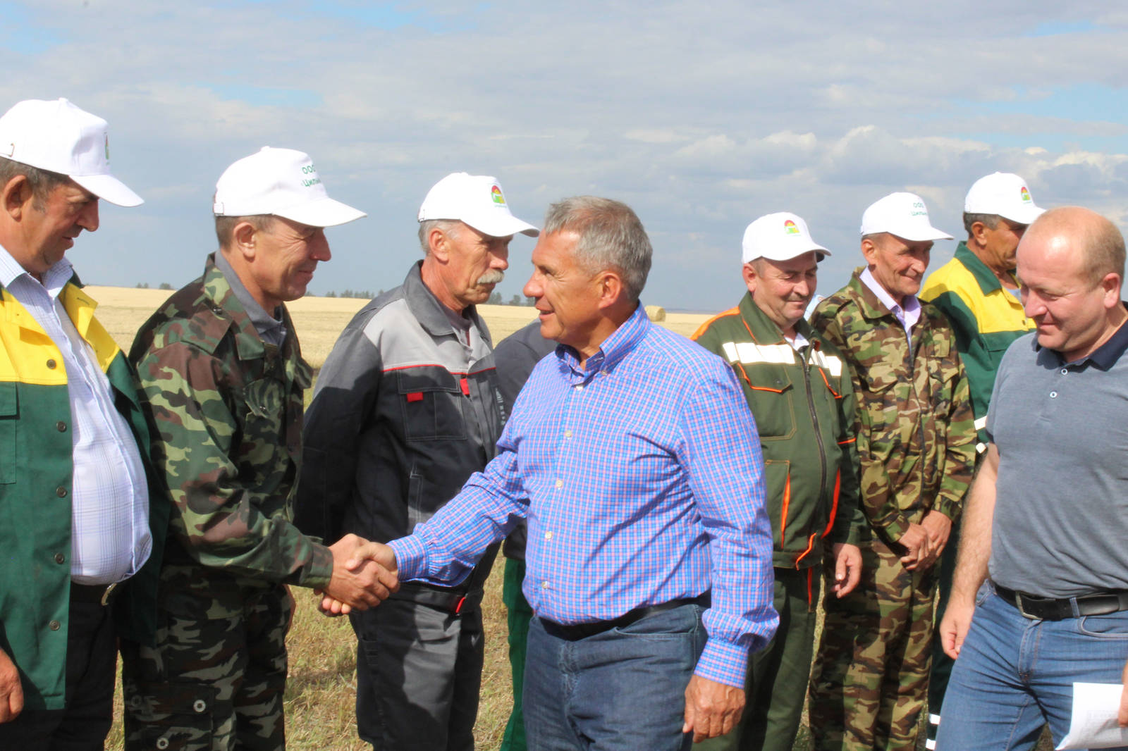 Рабочая поездка Президента Республики Татарстан Р.Н. Минниханова в Высокогорский муниципальный район с целью ознакомления с ходом уборочных работ