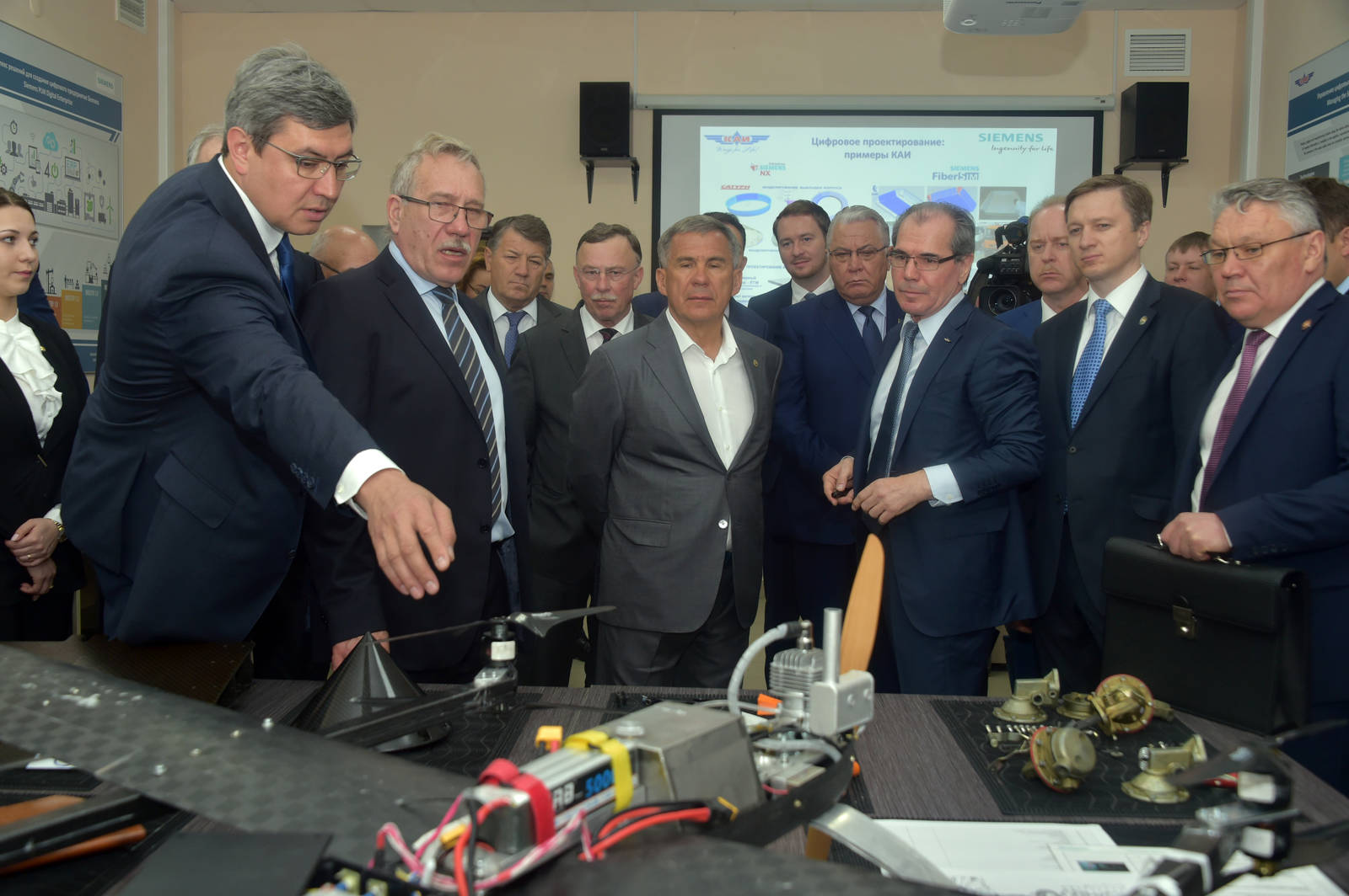 Открытие лаборатории Сименс СУПЖЦ (система управления полным жизненным циклом изделий) КНИТУ-КАИ. Принимает участие Президент Республики Татарстан Р.Н. Минниханов.