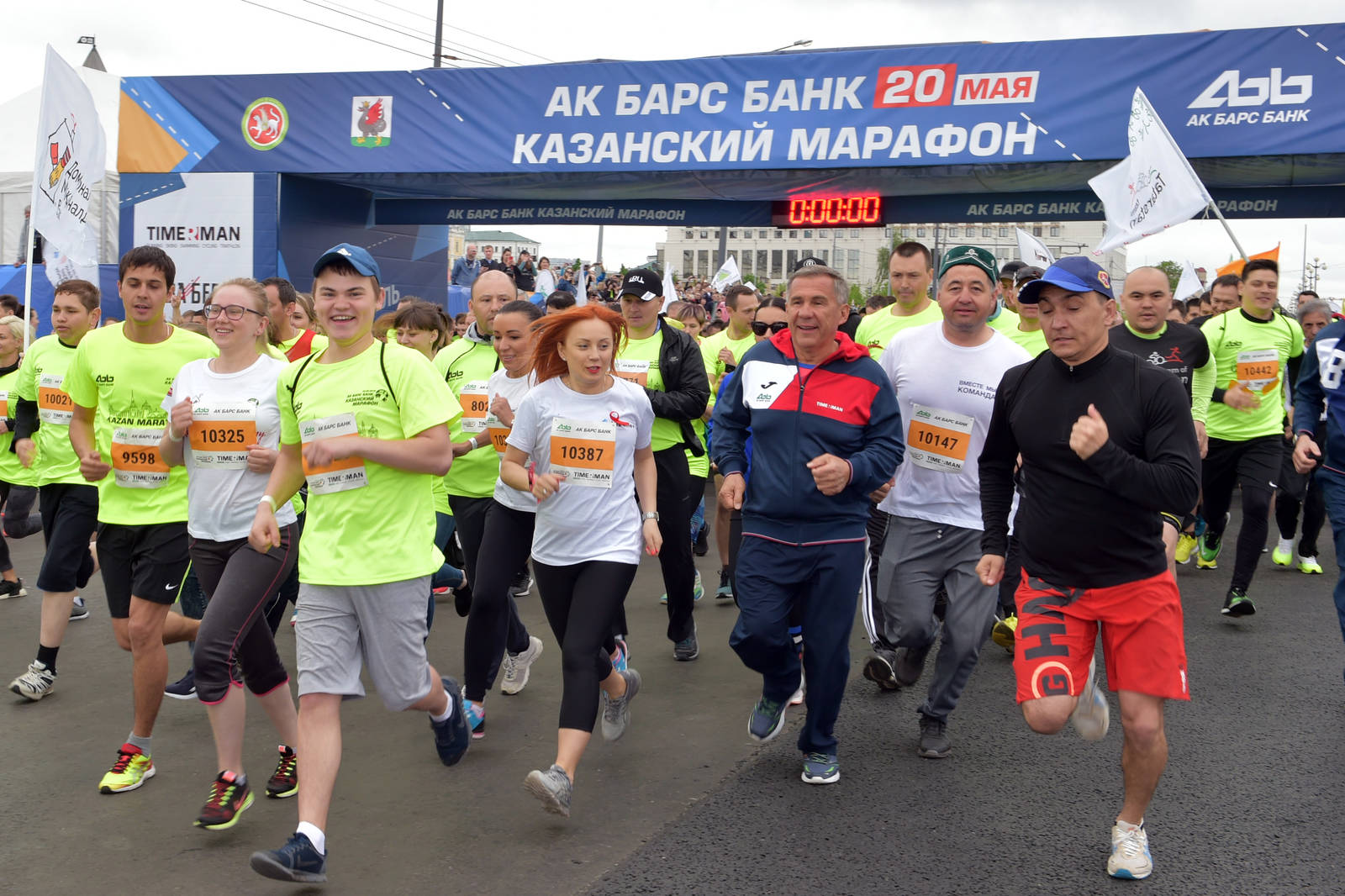 Казанский марафон-2018. Принимает участие Президент Республики Татарстан Р.Н. Минниханов.