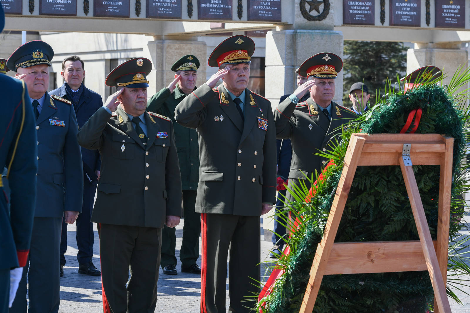 Возложение венка и цветов к вечному огню у Мемориала памяти Героям Великой Отечественной войны. Принимает участие Премьер-министр Республики Татарстан А.В. Песошин