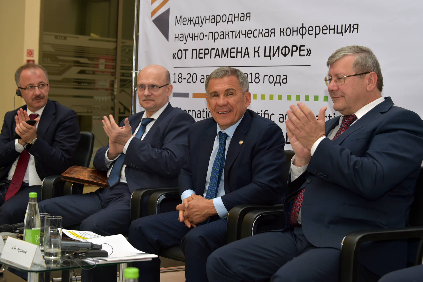 Международная научно-практическая конференция «От пергамента к цифре», посвященная 100-летию Архивной службы Российской Федерации и Республики Татарстан. Принимают участие руководитель Федерального архивного агентства А.Н. Артизов и Президент Республики Татарстан Р.Н. Минниханов