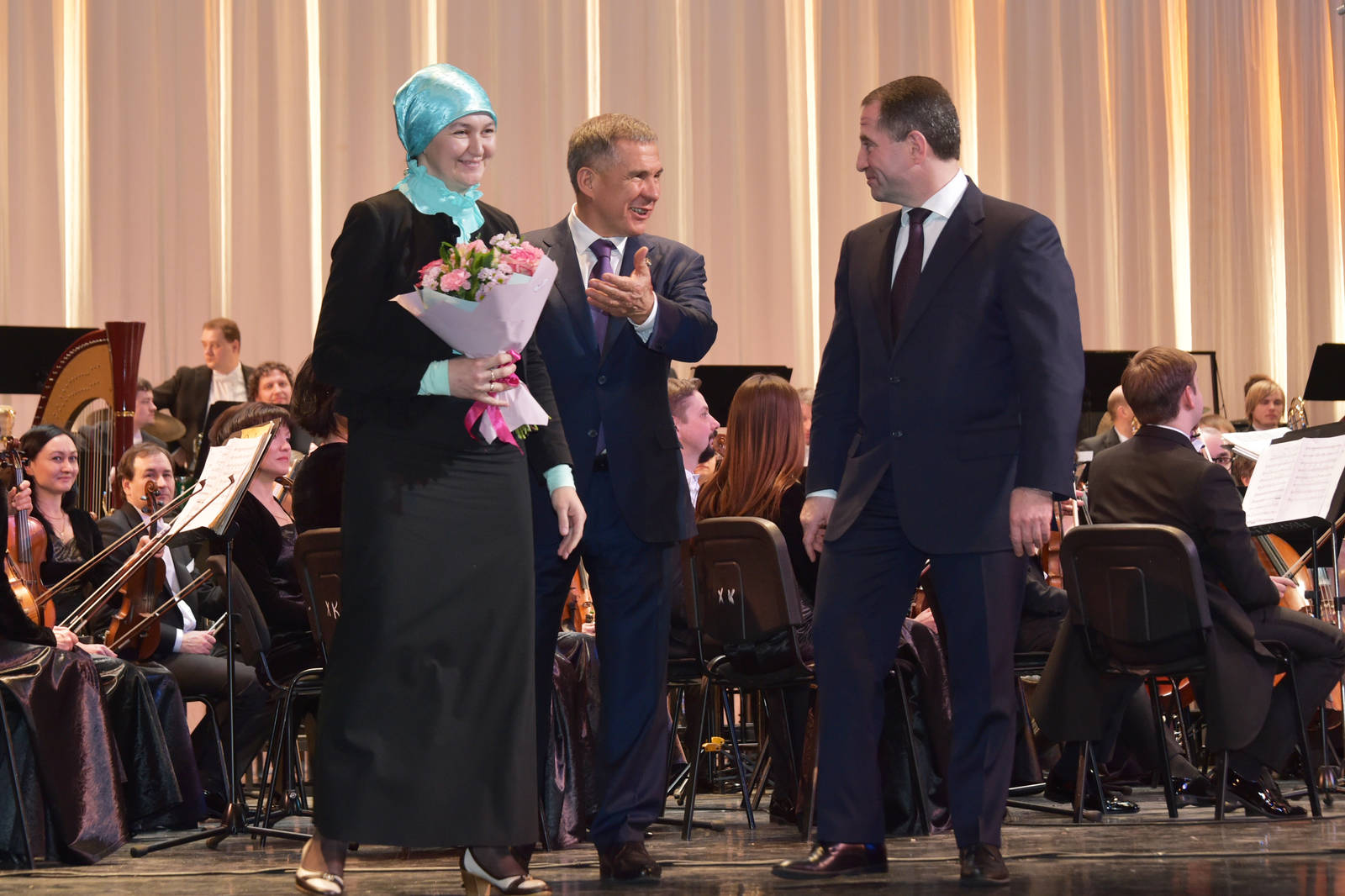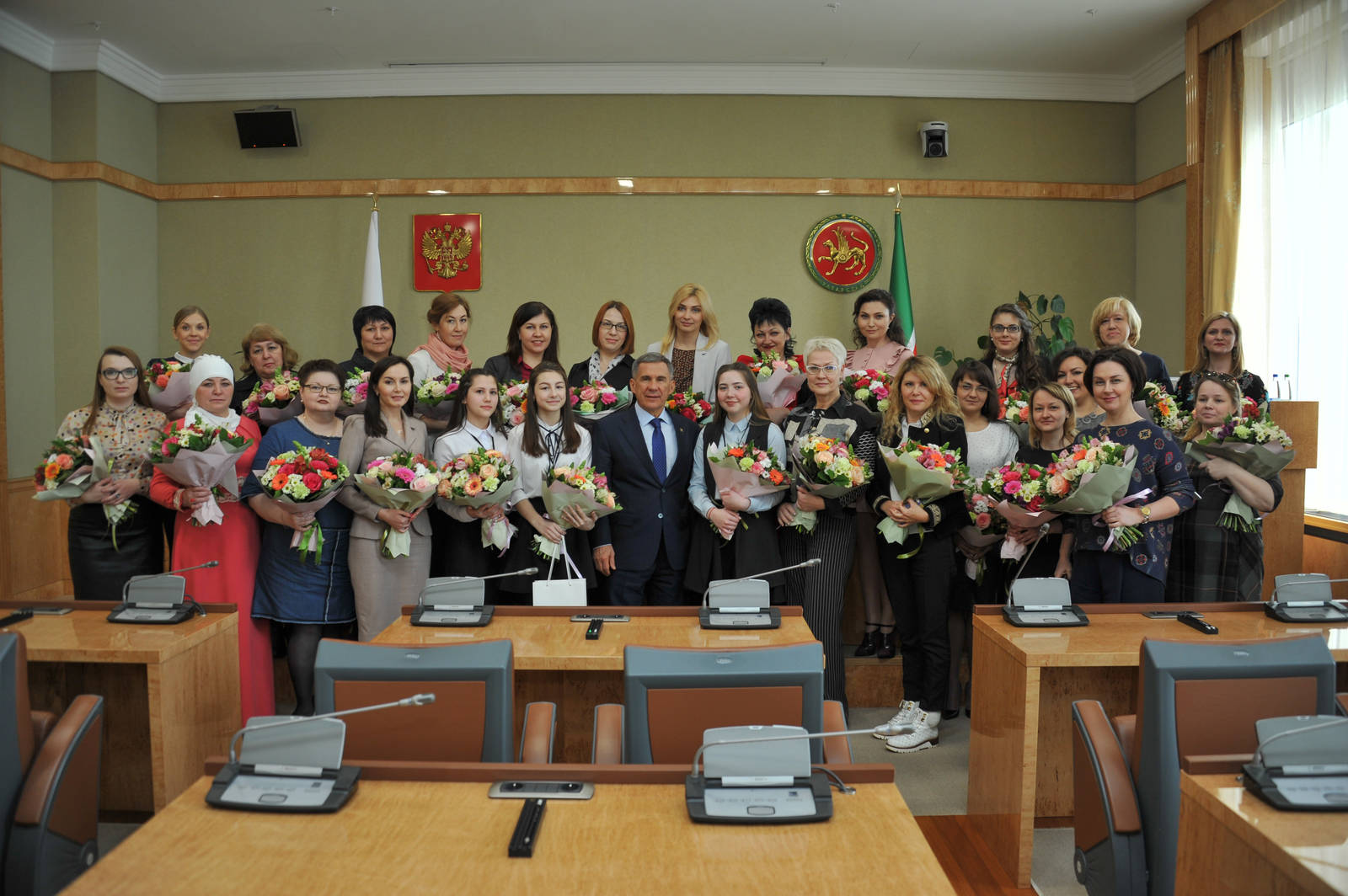 Торжественное мероприятие, посвященное Международному женскому дню. Принимают участие Полномочный представитель Президента Российской Федерации в Приволжском федеральном округе М.В. Бабич и Президент Республики Татарстан Р.Н.Минниханов.