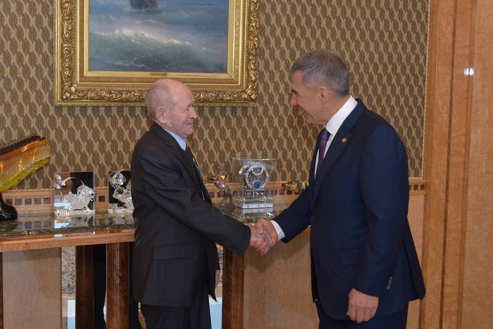 Чествование Президентом Республики Татарстан Р.Н. Миннихановым Героя Социалистического труда Ильдуса Шайхульисламовича Мостюкова по случаю 90-летия со дня рождения