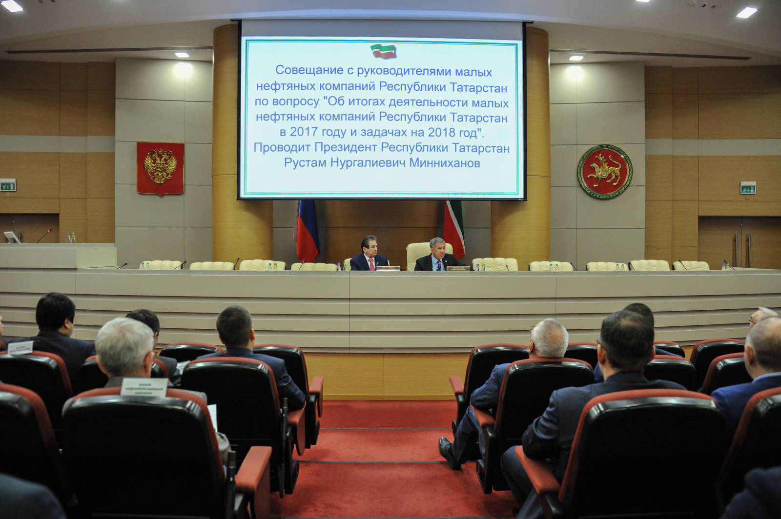 Совещание с руководителями малых нефтяных компаний Республики Татарстан по вопросу "Об итогах деятельности малых нефтяных компаний Республики Татарстан в 2017 году и задачах на 2018 год". Проводит Президент Республики Татарстан Р.Н. Минниханов. Фото: Михаил Фролов
