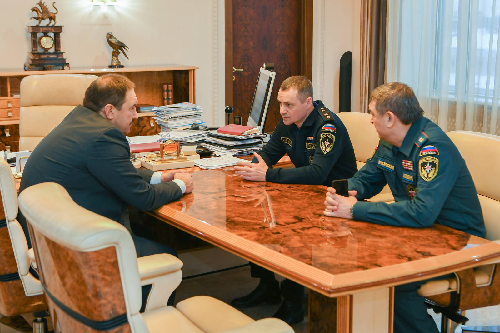Встреча Премьер-министра Республики Татарстан А.В.Песошина с заместителем Министра Российской Федерации по делам гражданской обороны, чрезвычайным ситуациям и ликвидации последствий стихийных бедствий В.В.Аксеновым. Фото Марата Хусаинова