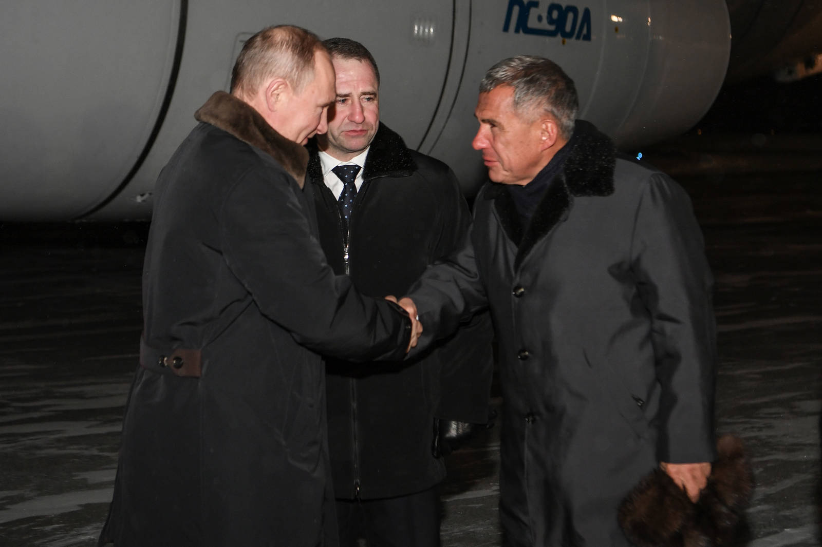 Прибытие Президента Российской Федерации В.В. Путина в Республику Татарстан. Встречает Президент Республики Татарстан Р.Н. Минниханов. Фото Марсель Бадыкшин