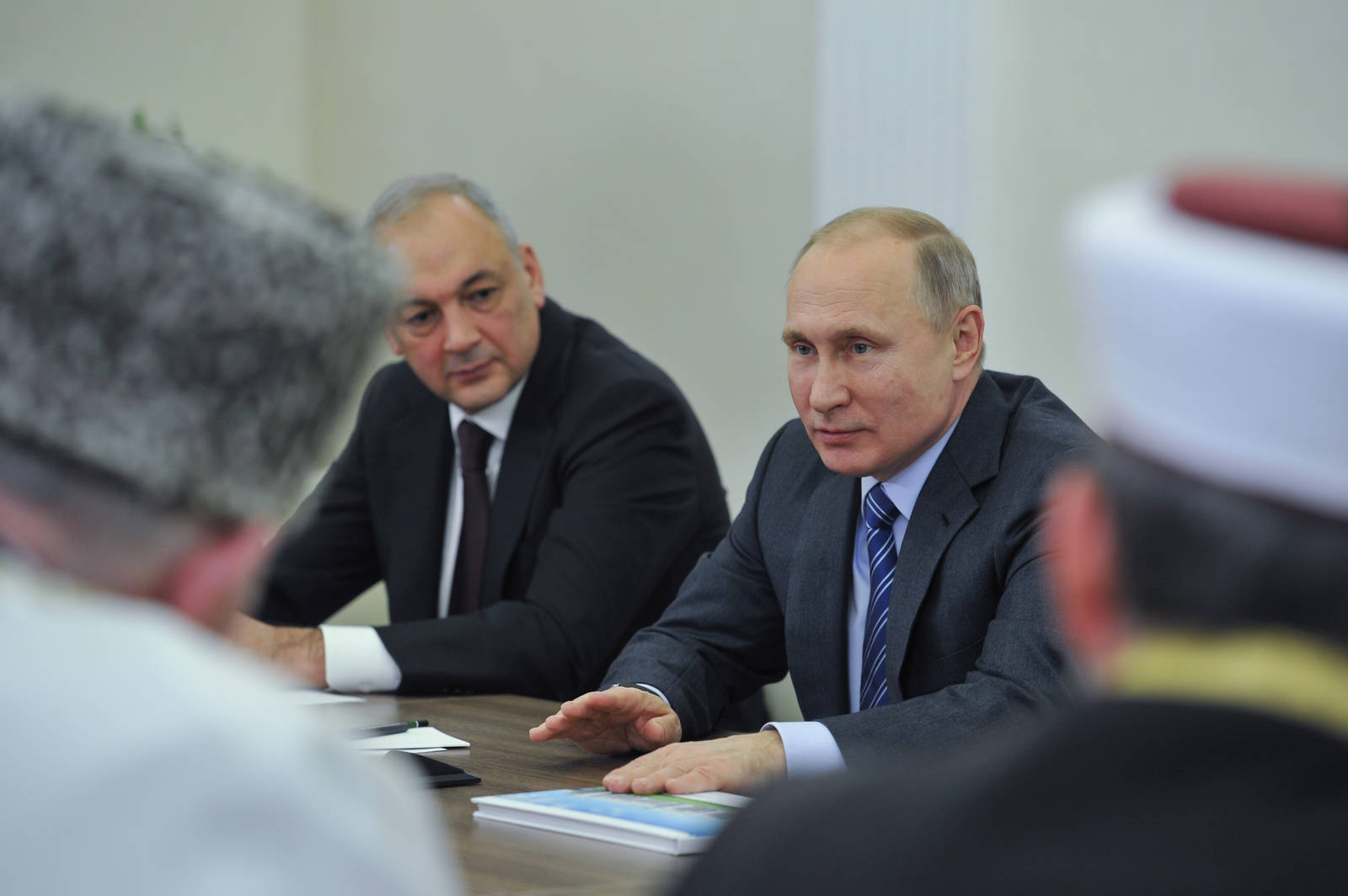Встреча Президента Российской Федерации В.В. Путина с представителями исламского духовенства. Принимает участие Президент Республики Татарстан Р.Н. Минниханов. Фото: Михаил Фролов
