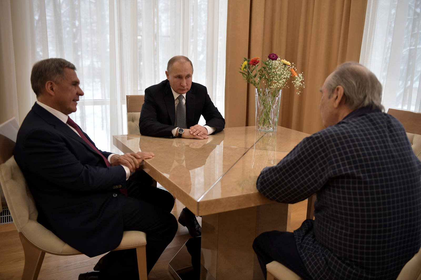 Встреча Президента Российской Федерации В.В.Путина с Государственным Советником Республики Татарстан М.Ш.Шаймиевым. Принимает участие Президент Республики Татарстан Р.Н.Минниханов. Фото kremlin.ru
