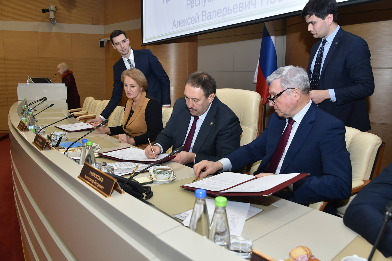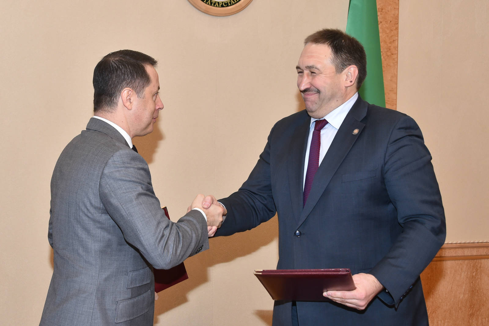 Подписание Соглашения между Федеральной службой по надзору в сфере природопользования и Кабинетом Министров Республики Татарстан о передаче Кабинету Министров Республики Татарстан осуществления части полномочий в области охраны окружающей среды. Принимает участие Премьер-министр Республики Татарстан А.В.Песошин.фото Р.Кадыров.