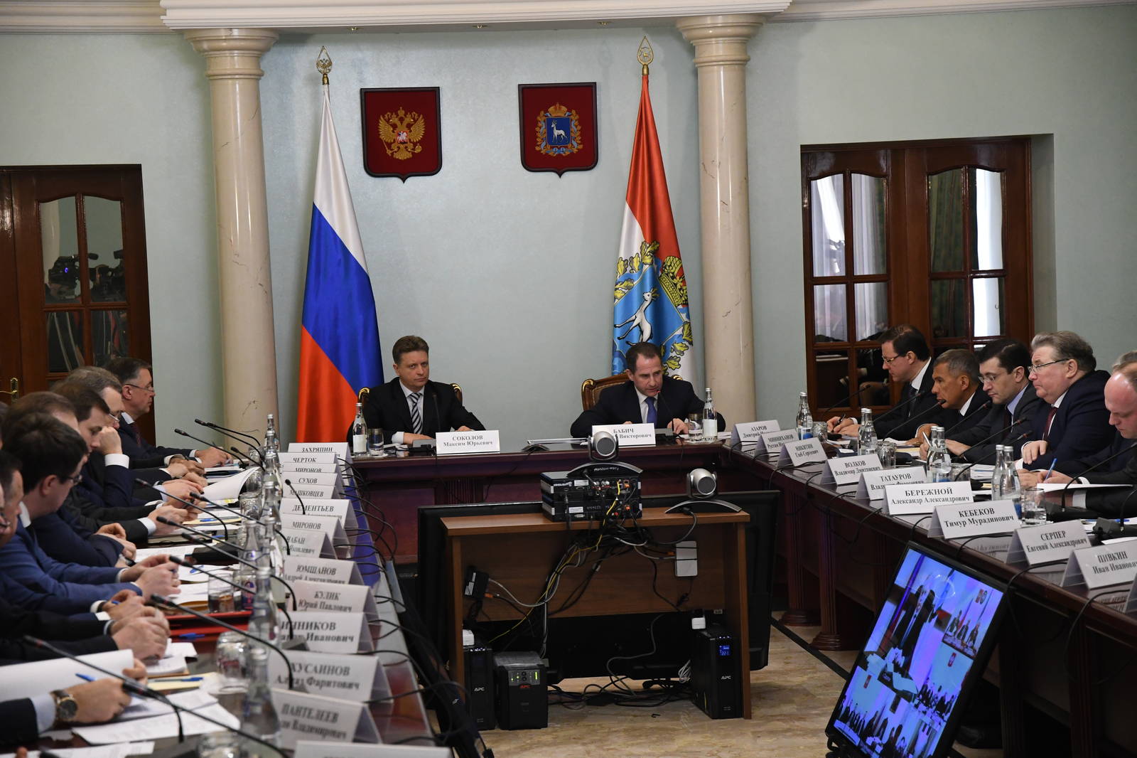 Совместное совещание полномочного представителя Президента Российской Федерации в Приволжском федеральном округе Михаила Викторовича Бабича и Министра транспорта Российской Федерации Максима Юрьевича Соколова. Принимает участие Президент Республики Татарстан Р.Н. Минниханов