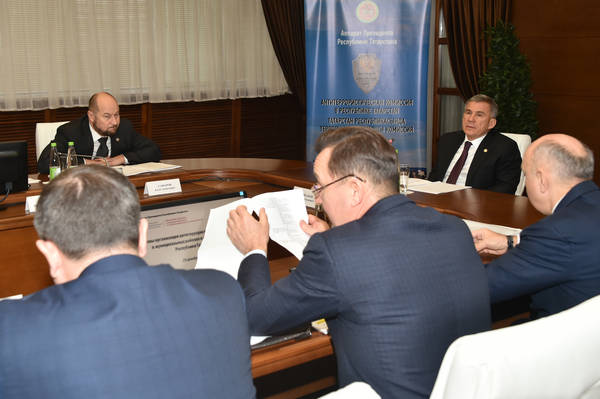 Итоговое заседание Республиканского штаба по реализации проекта строительства Комплекса "ТАНЕКО". Проводит Президент Республики Татарстан Р.Н. Минниханов. Фото: Михаил Фролов