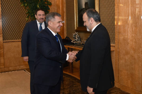 Встреча Президента Республики Татарстан Р.Н. Минниханова с Губернатором провинции Хорасан-Резави (Исламская Республика Иран) Али Резой Рашидияном.фото Р.Кадыров.