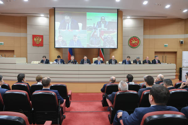 Совместное заседание Кабинета Министров Республики Татарстан и коллегии Министерства внутренних дел по Республике Татарстан "О реализации мер по повышению безопасности дорожного движения в Республике Татарстан, сокращению дорожно-транспортных происшествий и снижению тяжести их последствий". Принимает участие Президент Республики Татарстан Р.Н. Минниханов. Фото Марсель Бадыкшин