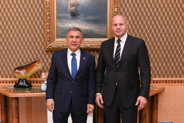 Встреча Президента Республики Татарстан Р.Н. Минниханова с президентом Общероссийской общественной организации "Союза смешанных боевых единоборств "ММА" России" Федором Владимировичем Емельяненко. Фото Марсель Бадыкшин