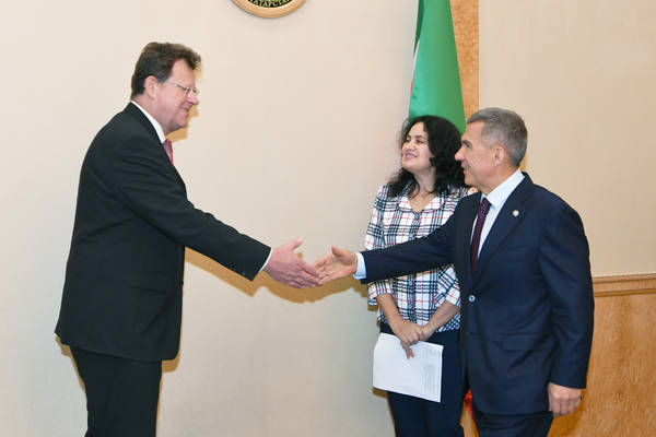 Рабочая встреча Президента Республики Татарстан Р.Н. Минниханова с президентом, главным исполнительным директором General Electric по России и странам СНГ Рональдом Поллеттом.фото Р.Кадыров.