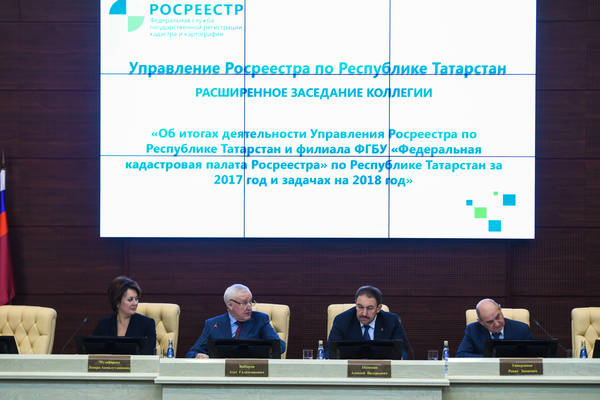 Расширенное заседание коллегии Управления Федеральной службы государственной регистрации, кадастра и картографии по Республике Татарстан «Об итогах деятельности Управления Федеральной службы государственной регистрации, кадастра и картографии по Республике Татарстан и филиала ФГБУ «ФКП Росреестра» по Республике Татарстан за 2017 год и задачах на 2018 год». Принимает участие Премьер-министр Республики Татарстан А.В. Песошин. Фото: Михаил Фролов
