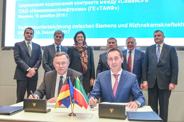 Подписание контракта между группой компаний «ТАИФ» и ООО «Сименс» о строительстве электростанции для ПАО «Нижнекамскнефтехим». Фото Марата Хусаинова