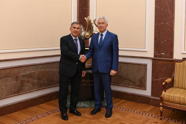 Встреча Президента Республики Татарстан Р.Н. Минниханова с временно исполняющим обязанности Главы Республики Дагестан В.А. Васильевым. Фото Марсель Бадыкшин