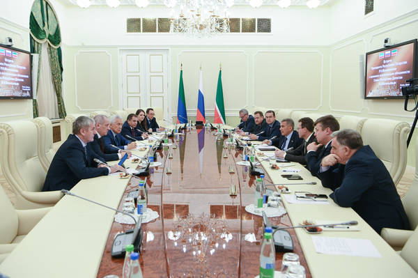 Встреча Президента Республики Татарстан Р.Н. Минниханова с делегацией Республики Дагестан во главе с временно исполняющим обязанности Главы Республики Дагестан В.А. Васильевым. Фото Марсель Бадыкшин