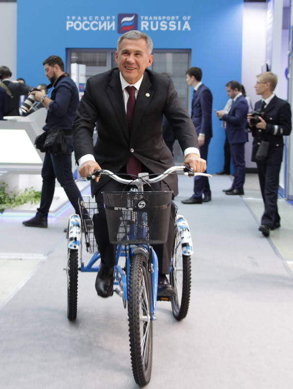 Официальный обход выставки "Транспорт России". Принимает участие Президент Республики Татарстан Р.Н. Минниханов. Фото: Александр Ерашов