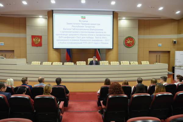 Встреча Заместителя Премьер-министра Республики Татарстан В.Г. Шайхразиева с организаторами и волонтерами проекта по пропаганде здорового образа жизни и профилактике ВИЧ-инфекции «Тест для победы. Test to Win», прошедшего в рамках Казанского марафона – 2017 и Кубка конфедераций FIFA 2017 года в г.Казани. Фото Марсель Бадыкшин