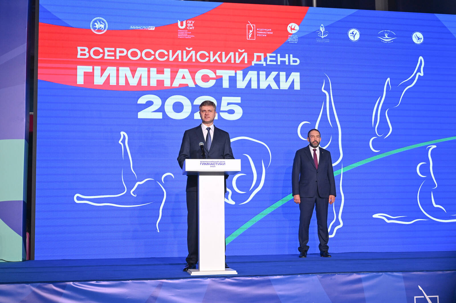 Торжественное открытие Фестиваля Всероссийского дня гимнастики. Принимает участие Премьер-министр Татарстана Алексей Песошин.