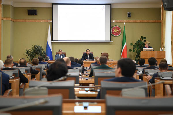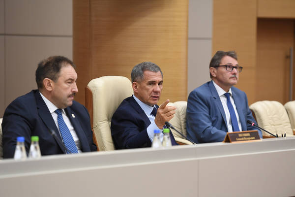 Сессия по реализации Стратегии социально-экономического развития Республики Татарстан до 2030 года. Принимают участие директор Ресурсного центра по стратегическому планированию при Леонтьевском центре, заместитель генерального директора по научной работе АНО «Международный центр социально-экономических исследований «Леонтьевский центр» Борис Савельевич Жихаревич, Президент Республики Татарстан Р.Н. Минниханов. Фото: Михаил Фролов