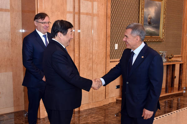 Встреча Президента Республики Татарстан Р.Н.Минниханова с Председателем и Генеральным директором компании "Weichai Power” г-ном ТАН Сюгуангом.фото Р.Кадыров.