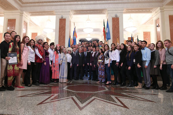 Церемония закрытия Всероссийского форума тюркской молодежи «Золото тюрков». Принимают участие Руководитель Федерального агентства по делам национальностей И.В. Баринов, Президент Республики Татарстан Р.Н. Минниханов. Фото Марсель Бадыкшин