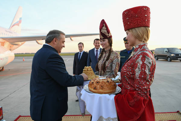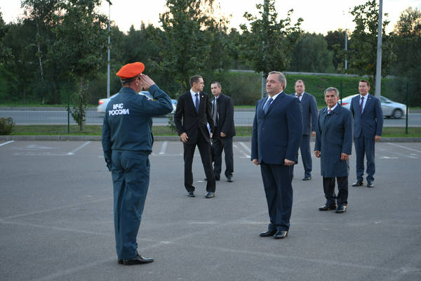 Прибытие в Республику Татарстан Министра Российской Федерации по делам гражданской обороны, чрезвычайным ситуациям и ликвидации последствий стихийных бедствий Владимира Андреевича Пучкова. Встречает Президент Республики Татарстан Р.Н. Минниханов. Фото Марсель Бадыкшин