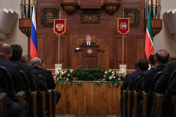 Тридцать первое заседание Государственного Совета Республики Татарстан пятого созыва «Ежегодное послание Президента Республики Татарстан Государственному Совету Республики Татарстан о внутреннем и внешнем положении республики». Фото Марсель Бадыкшин
