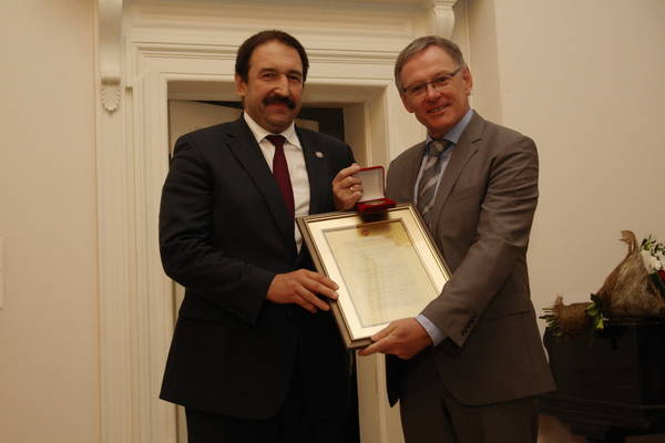 Вручение Международной Арбузовской премии в области фосфорорганической химии Манфреду Шееру, профессору Университета г.Регенсбург (Германия). Принимает участие Премьер-министр Республики Татарстан А.В. Песошин.: фото Михаила Козловского