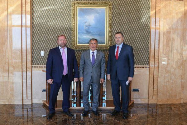 Встреча Президента Республики Татарстан Р.Н.Минниханова с председателем Комитета партнеров Адвокатского бюро «Егоров, Пугинский, Афанасьев и партнеры» Д.О.Афанасьевым и руководителем практики административного права и законотворчества Адвокатского Бюро «Егоров, Пугинский, Афанасьев и партнеры» С.Б.Пугинским. Фото: М.Бадыкшин