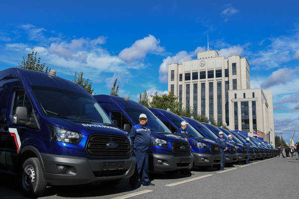 Торжественная церемония передачи автомобилей Ford Transit ФГУП «Почта России». Принимает участие Президент Республики Татарстан Р.Н. Минниханов. Фото Марсель Бадыкшин
