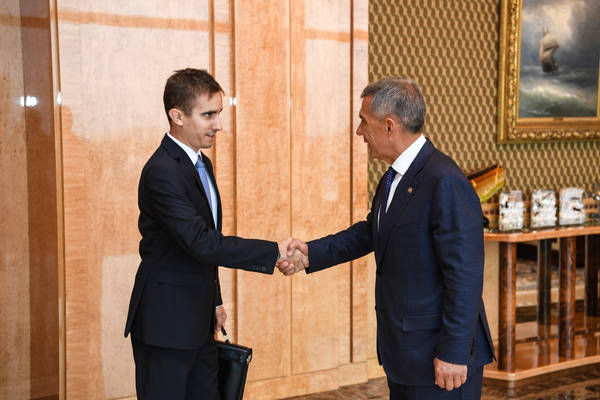 Встреча Президента Республики Татарстан Р.Н. Минниханова с Генеральным консулом Венгрии в г. Казани Адамом Штифтером. Фото: Михаил Фролов